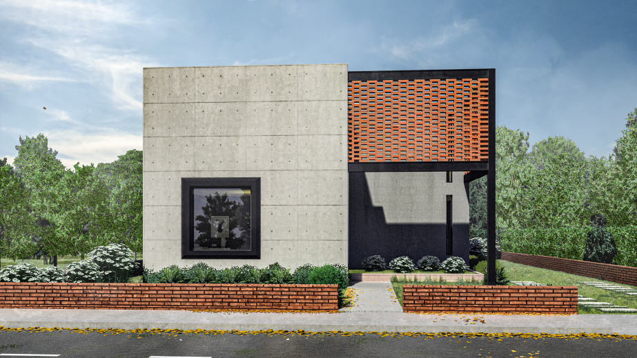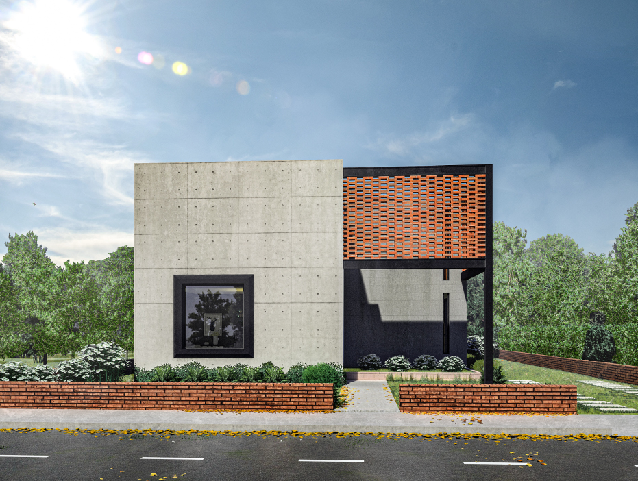 Este proyecto es una vivienda ubicada dentro de un sector periurbano, en la que por precauciones de seguridad no se puede mostrar como arquitectónicamente se quisiera, por precautelar la integridad de sus habitantes. Cuenta con un terreno amplio que necesitó ser preservado para garantizar áreas verdes amplias. Tiene la estructura de vivienda de conjunto residencial a partir de un cubo desfasado, que genera dos espacios al frente y al posterior, el primero funciona como un preámbulo al ingreso, marca una ruptura visual con el entorno exterior y da la bienvenida generando un recibidor a partir de la estructura metálica vista sobre la que fue construída, genera un volado figurativamente suspendido en el aire con celosía de ladrillo; el segundo funciona como un patio cubierto y zona de parrilla cubierto por una pérgola, ideal para compartir con familia. Cuenta con tres dormitorios completos ubicados en la segunda planta, los cuales reciben luz y calor al amanecer y al atardecer, lo cual garantiza condiciones térmicas ideales a toda hora. En la planta baja se encuentran la cocina, comedor, sala, baño social y un estudio. Es un programa amplio optimizado funcionalmente en dos plantas de 85 metros cuadrados, que generan la apariencia de una casa más grande de su tamaño real.