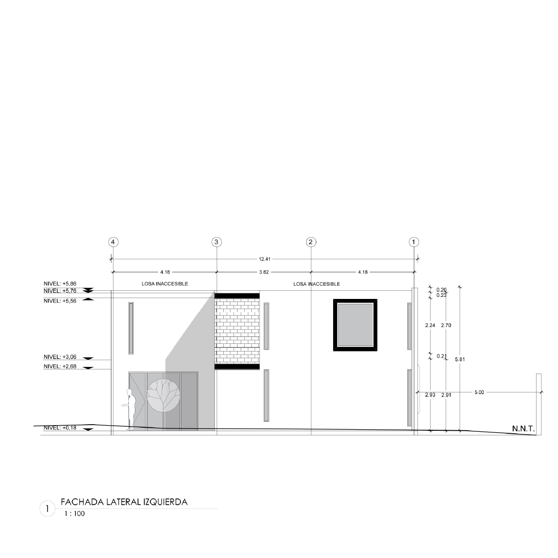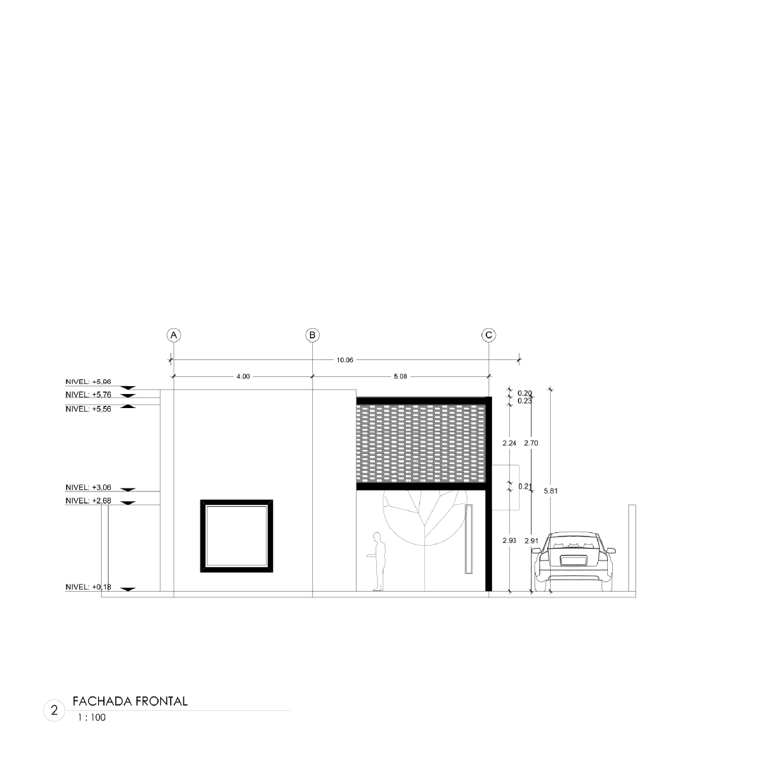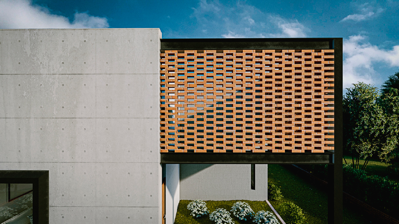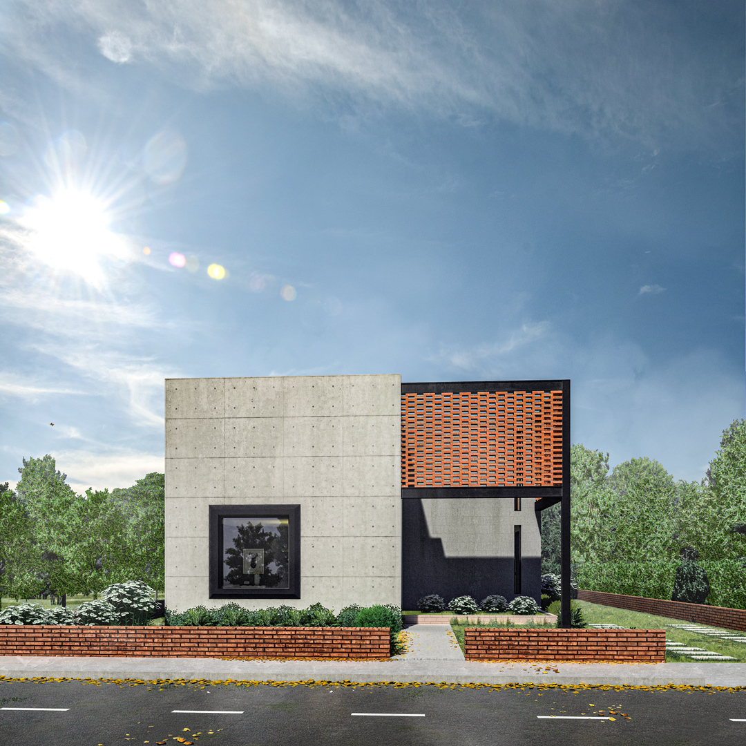Este proyecto es una vivienda ubicada dentro de un sector periurbano, en la que por precauciones de seguridad no se puede mostrar como arquitectónicamente se quisiera, por precautelar la integridad de sus habitantes. Cuenta con un terreno amplio que necesitó ser preservado para garantizar áreas verdes amplias. Tiene la estructura de vivienda de conjunto residencial a partir de un cubo desfasado, que genera dos espacios al frente y al posterior, el primero funciona como un preámbulo al ingreso, marca una ruptura visual con el entorno exterior y da la bienvenida generando un recibidor a partir de la estructura metálica vista sobre la que fue construída, genera un volado figurativamente suspendido en el aire con celosía de ladrillo; el segundo funciona como un patio cubierto y zona de parrilla cubierto por una pérgola, ideal para compartir con familia. Cuenta con tres dormitorios completos ubicados en la segunda planta, los cuales reciben luz y calor al amanecer y al atardecer, lo cual garantiza condiciones térmicas ideales a toda hora. En la planta baja se encuentran la cocina, comedor, sala, baño social y un estudio. Es un programa amplio optimizado funcionalmente en dos plantas de 85 metros cuadrados, que generan la apariencia de una casa más grande de su tamaño real.