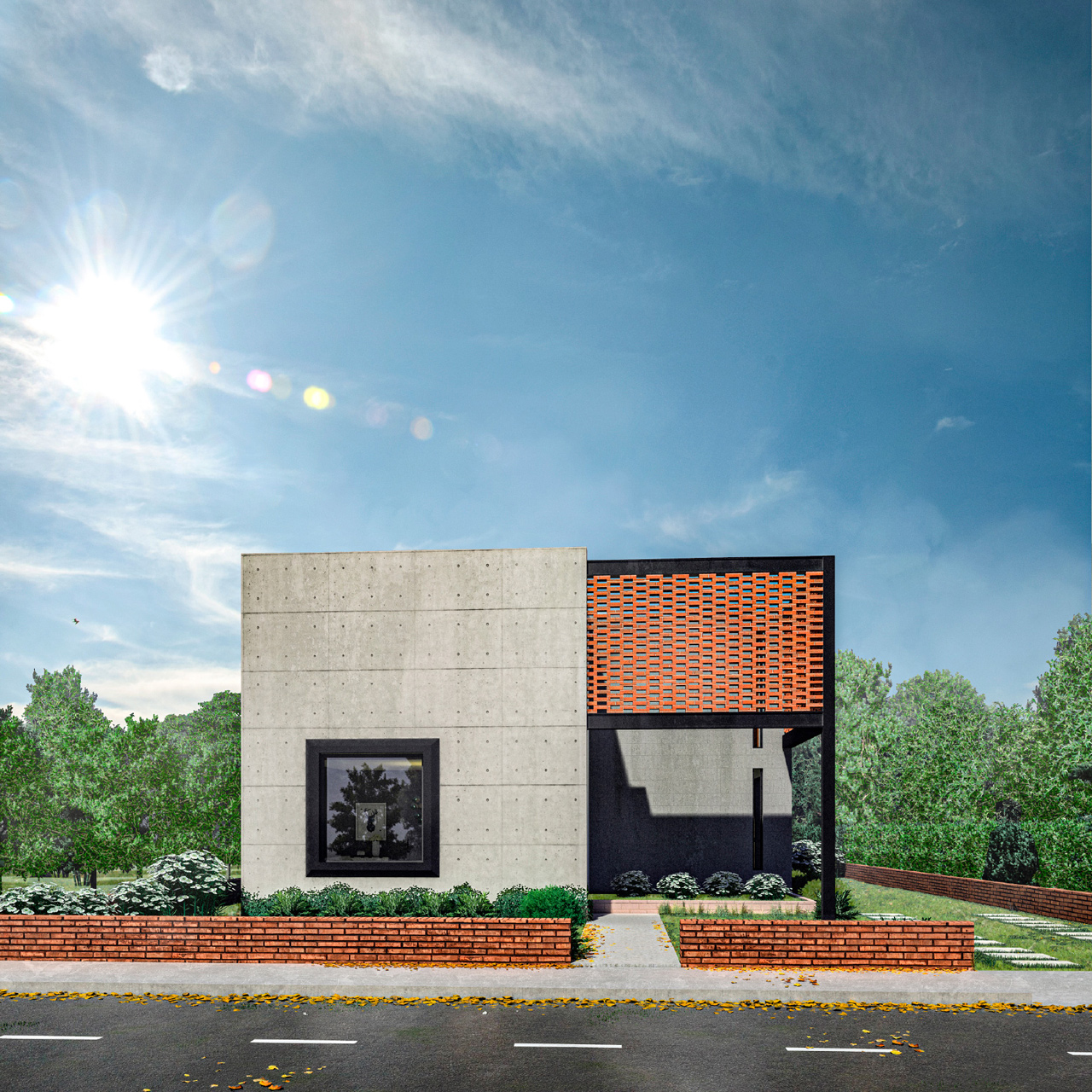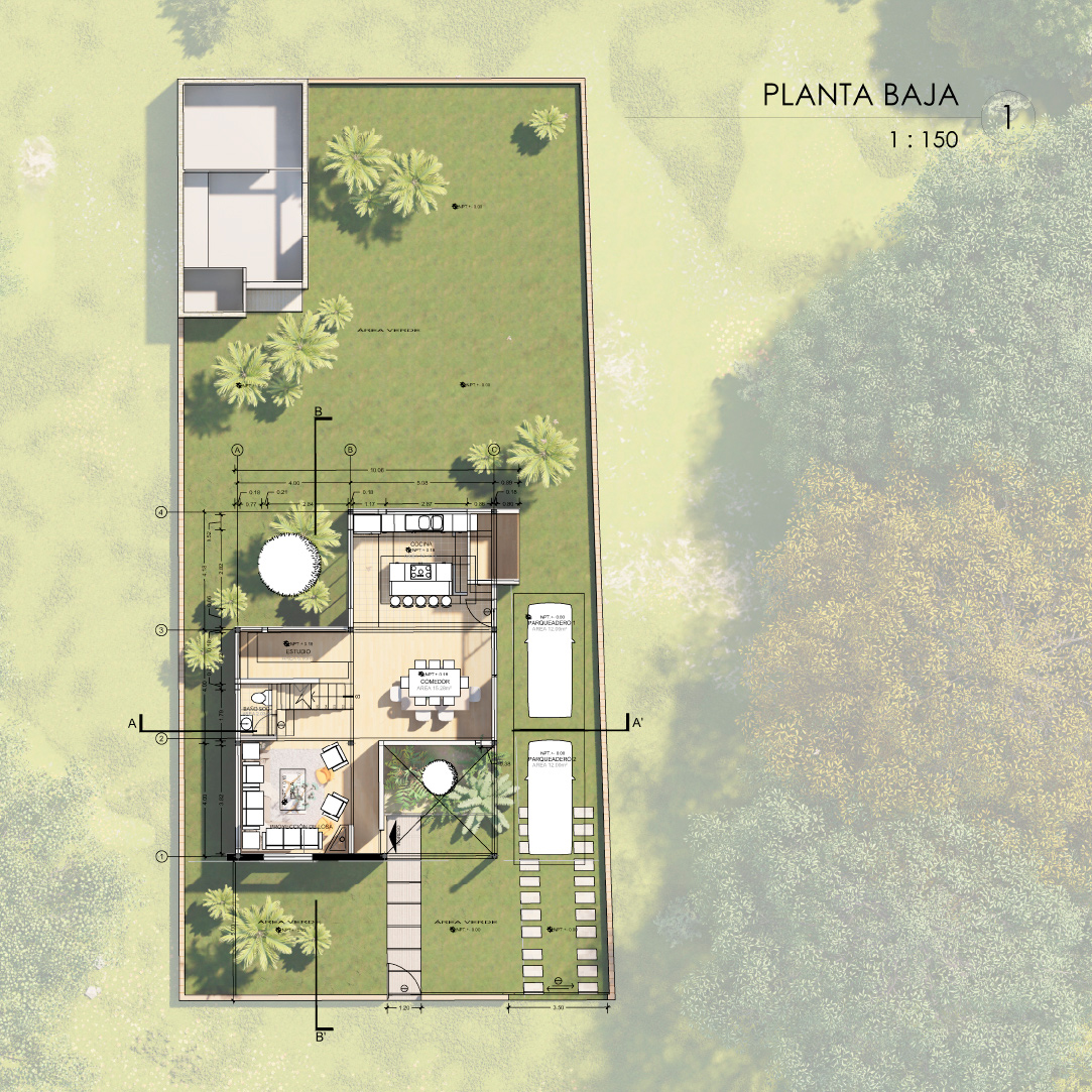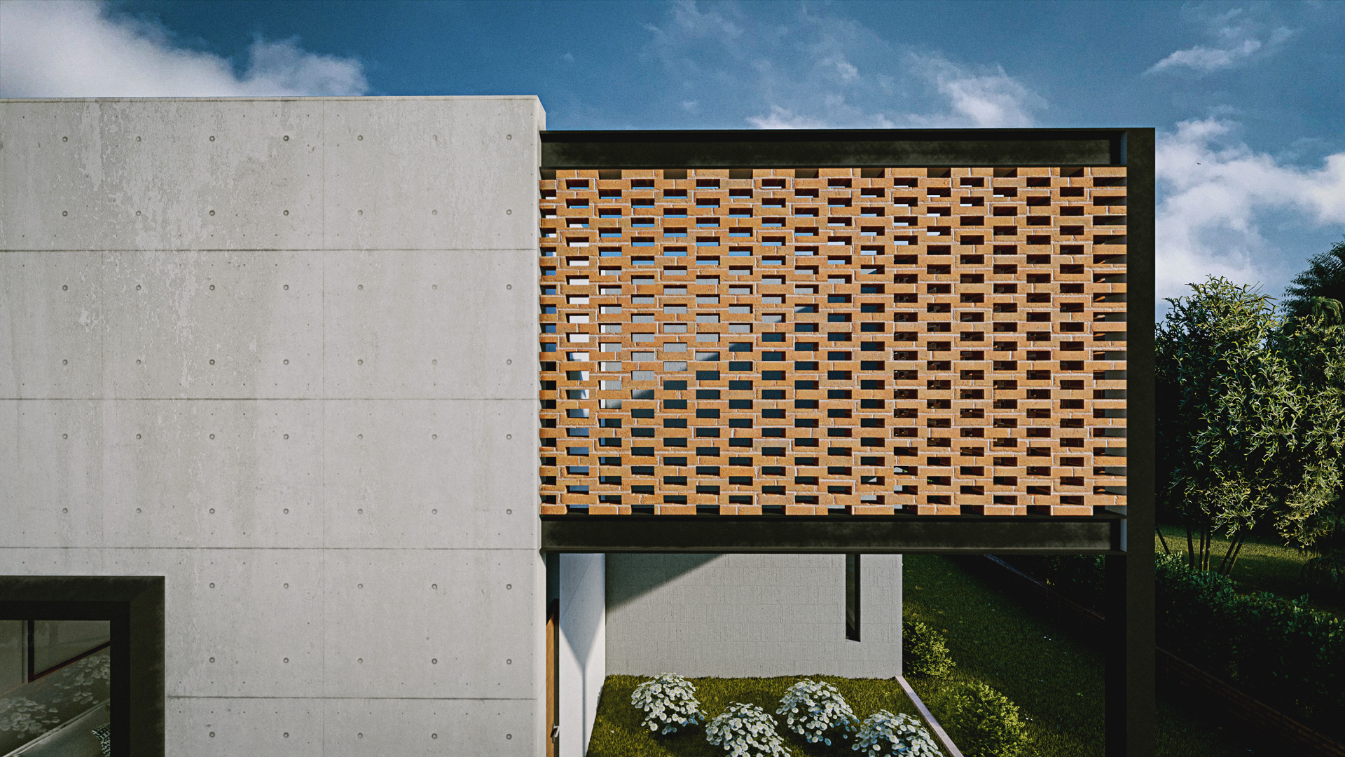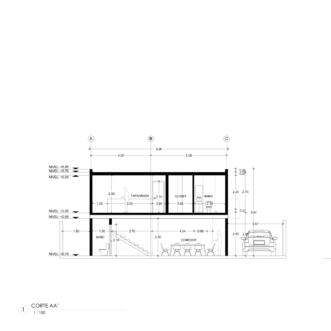 Este proyecto es una vivienda ubicada dentro de un sector periurbano, en la que por precauciones de seguridad no se puede mostrar como arquitectónicamente se quisiera, por precautelar la integridad de sus habitantes. Cuenta con un terreno amplio que necesitó ser preservado para garantizar áreas verdes amplias. Tiene la estructura de vivienda de conjunto residencial a partir de un cubo desfasado, que genera dos espacios al frente y al posterior, el primero funciona como un preámbulo al ingreso, marca una ruptura visual con el entorno exterior y da la bienvenida generando un recibidor a partir de la estructura metálica vista sobre la que fue construída, genera un volado figurativamente suspendido en el aire con celosía de ladrillo; el segundo funciona como un patio cubierto y zona de parrilla cubierto por una pérgola, ideal para compartir con familia. Cuenta con tres dormitorios completos ubicados en la segunda planta, los cuales reciben luz y calor al amanecer y al atardecer, lo cual garantiza condiciones térmicas ideales a toda hora. En la planta baja se encuentran la cocina, comedor, sala, baño social y un estudio. Es un programa amplio optimizado funcionalmente en dos plantas de 85 metros cuadrados, que generan la apariencia de una casa más grande de su tamaño real.